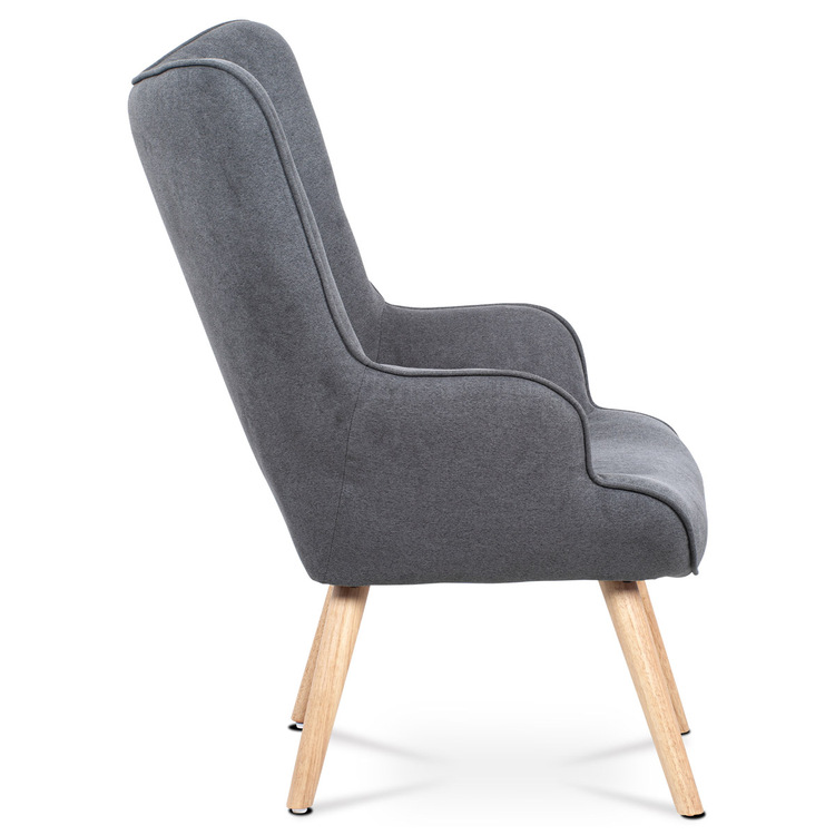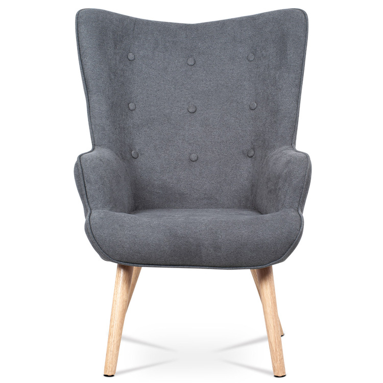 AK-302 GREY2 - Kreslo "ušiak" s podnožkou, poťah šedá látka, drevené nohy, masív kaučukovník