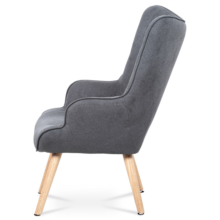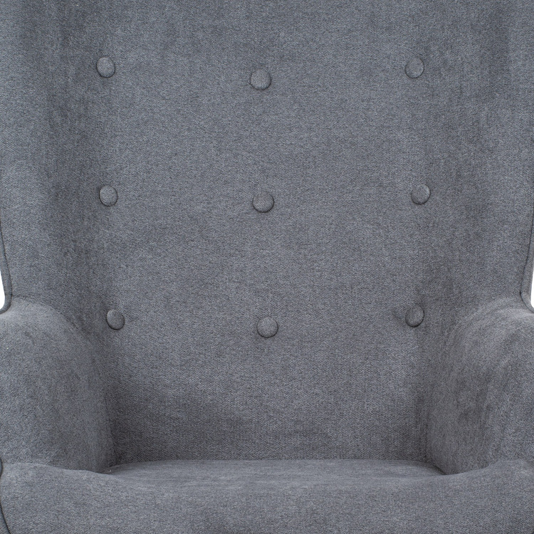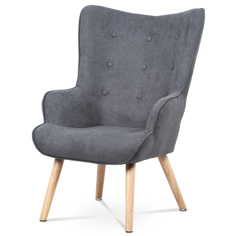 Kreslo minimalistických línií v škandinávskom štýle. Vyniká vysokým prehnutým operadlom, úzkymi a krátkymi podrúčkami a dekoratívnymi jemnými čalounickými vťahmi zakončenými gombíkmi na čelnej strane operadla. To všetko vytvára charakteristické severské retro línie tohto kresla.