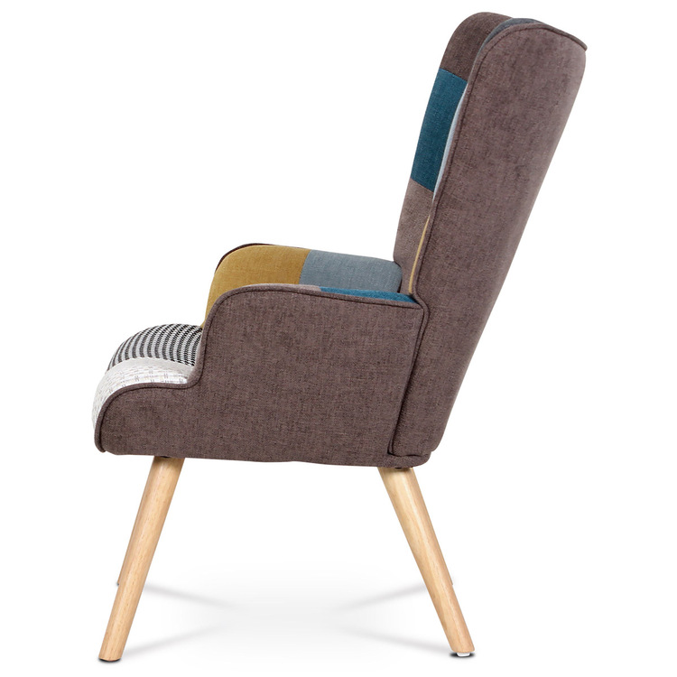 AK-305 PW2 - Kreslo "ušiak" s podnožkou, poťah patchwork látka, nohy masív kaučukovník
