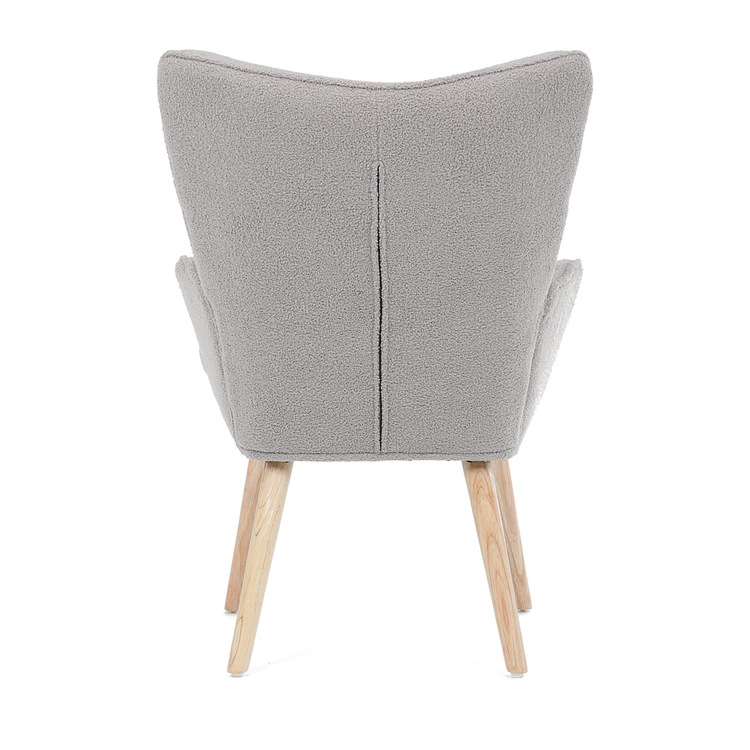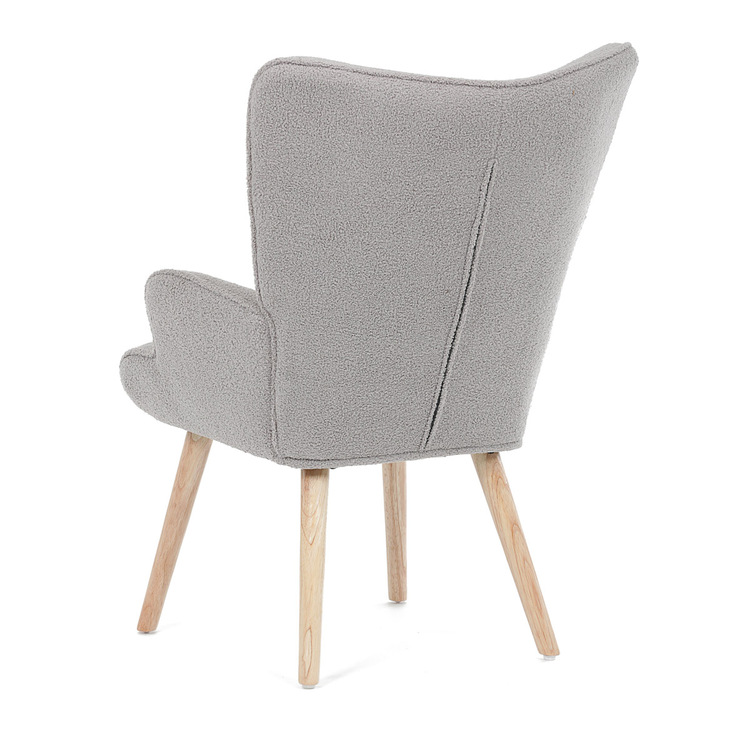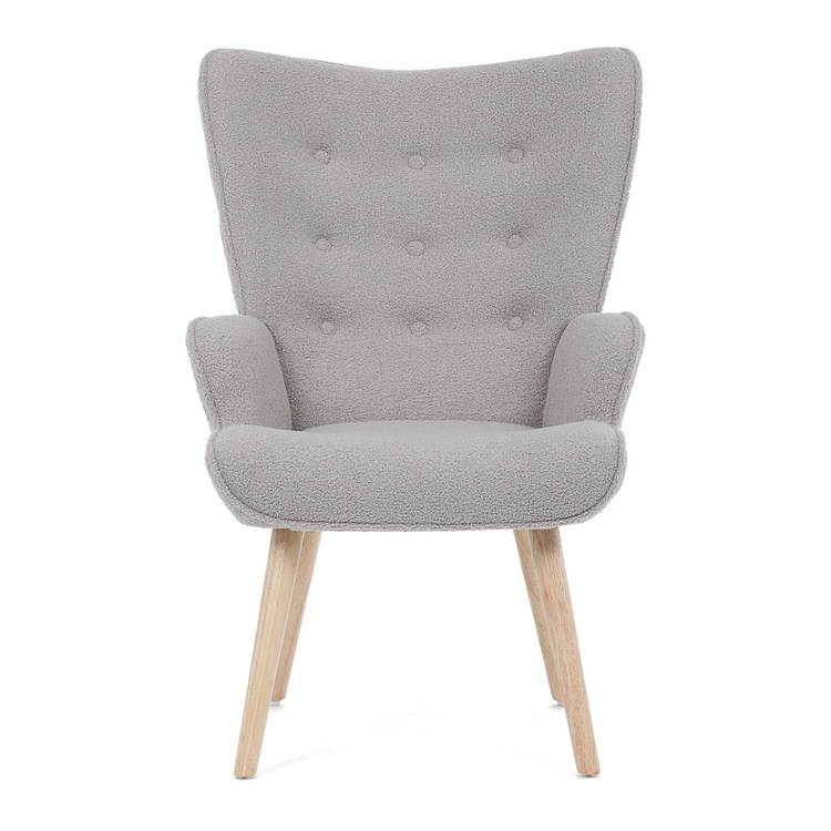 AK-309 GREY2 - Kreslo "ušiak", poťah šedá látka bouclé, nohy masív kaučukovník