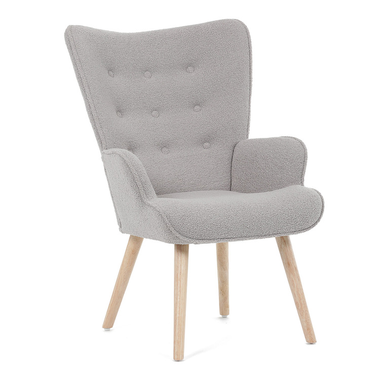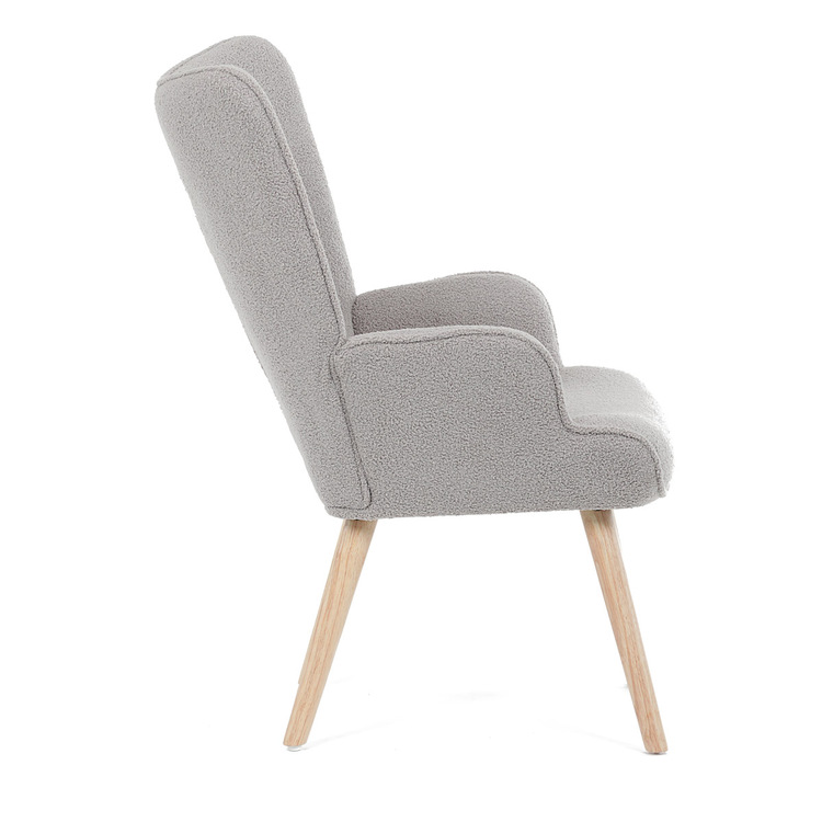 Skrášlite svoju obývaciu izbu alebo pracovňu týmto kreslom, ktoré v sebe kombinuje šedú farbu a prírodné masívne nohy. Poťah kresla je vyrobený z látky bouclé s jemným povrchom. Penová výplň kresla Vám poskytne skutočný komfort.