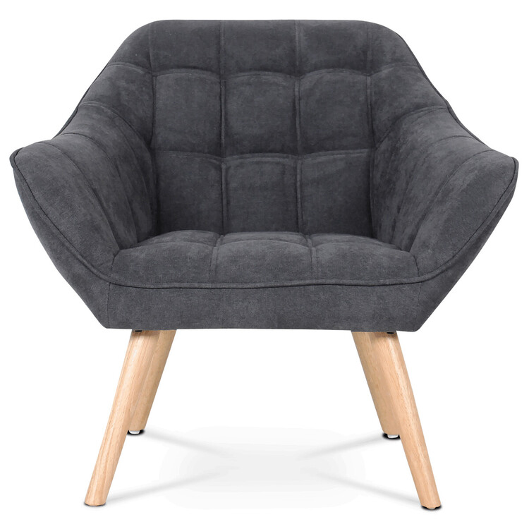 AK-321 GREY2 - Kreslo, poťah tmavo šedá látka, drevené nohy, masív kaučukovník