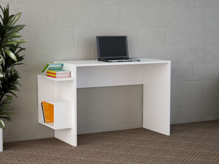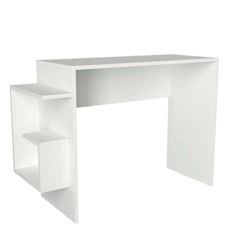 Pisací stôl je vyrobený z kvalitného LTD materiálu s hrúbkou 18 mm, čo zaisťuje jeho pevnosť a dlhú životnosť. Elegantný biely dizajn dodáva stolu moderný a čistý vzhľad, ktorý sa hodí do akéhokoľvek interiéru. Stôl je vybavený praktickým regálkom, ktorý poskytuje dostatok úložného priestoru pre vaše pracovné potreby a pomôcky.