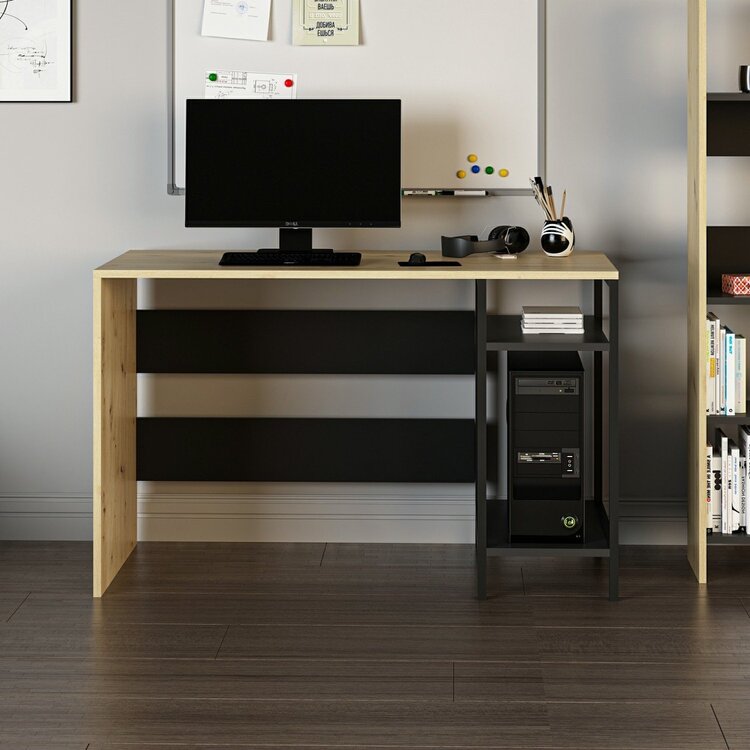 Písací stôl kombinuje moderný dizajn s funkčnosťou a je ideálnym riešením pre detskú izbu alebo pracovňu. Vďaka odkladacím policam a integrovanému kontajneru na PC poskytuje dostatok priestoru pre efektívnu prácu aj štúdium. Jeho farebná kombinácia dub Artisan a čierna dodáva interiéru elegantný vzhľad.