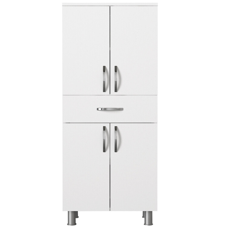 Elegantná biela farba tejto skrinky dodá každému kúpeľnovému dekoru