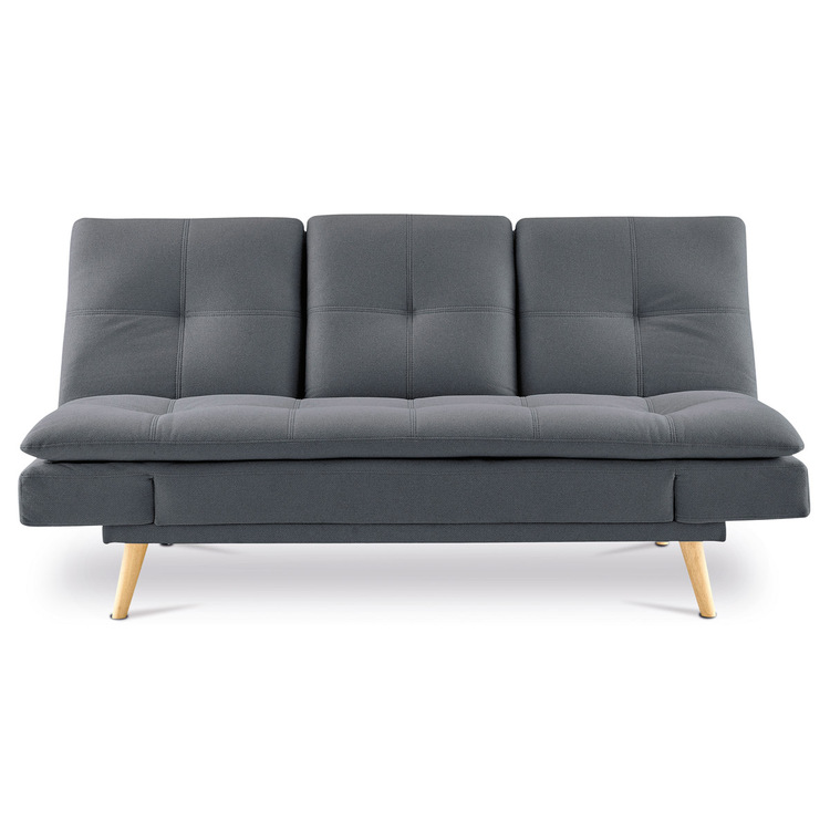 ASB-4720 GREY2 - Rozkladacia pohovka click-clack, 3-miestna, držiak nápojov, poťah tmavo šedá látka, nohy masív buk