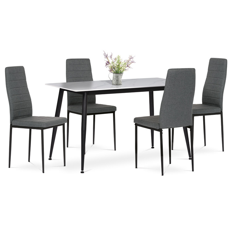 Moderný jedálenský set Autronic v industriálnom štýle je skvelou voľbou pre vašu jedáleň. Obdĺžnikový stôl s doskou zo spekanej keramiky v bielom mramorovom dekore pôsobí elegantne a je odolný voči poškriabaniu. Stabilitu zaisťujú čierne kovové nohy s jemne kónickým tvarom.... více informací o zboží