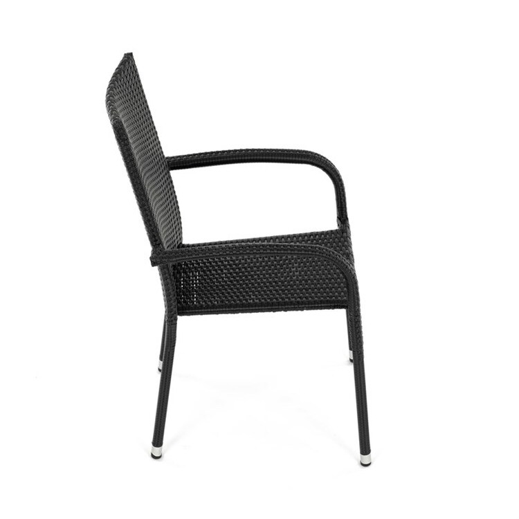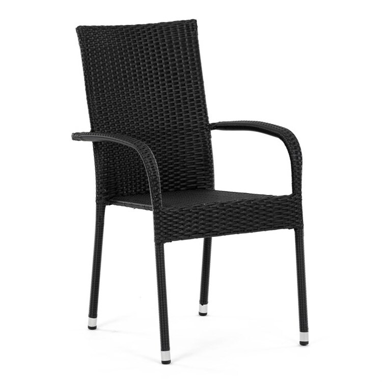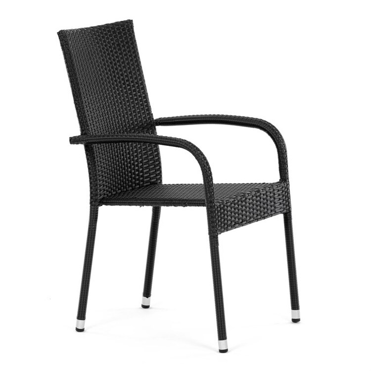 AZC-S2113 BK - Stolička záhradná, čierny umelý ratan, kov, stohovateľná.