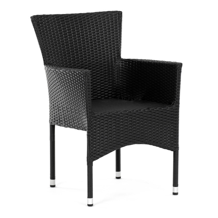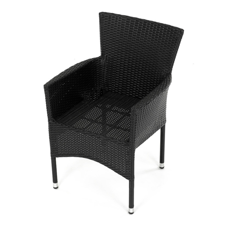 AZC-S2117 BK - Stolička záhradná, čierny umelý ratan, kov, stohovateľná.