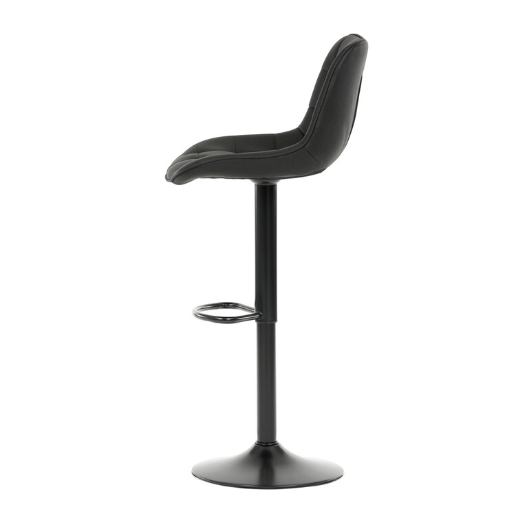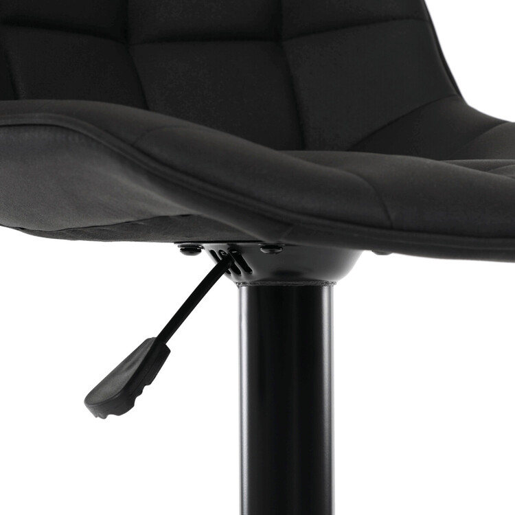 Barová stolička AUB-V3066 BK3 kombinuje moderný design s praktickou funkčnosťou. Sedák aj operadlo sú potiahnuté čiernou látkou v dekore brúsenej kože, ktorá ponúka príjemný povrch a výrazné dizajnové prešitie dodáva stoličke charakter. Výškovo nastaviteľný mechanizmus umožňuje ľahké prispôsobenie výšky sedenia podľa potreby, zatiaľ čo otočná konštrukcia zaisťuje pohodlný pohyb. Pevná kovová podnož v čiernom matnom prevedení je stabilná a doplnená o opierku nôh pre zvýšenie komfortu pri dlhšom sedení. Stolička je vhodná do moderných interiérov, barov či kuchynských kútov, kde oceníte kombináciu štýlu a funkčnosti.