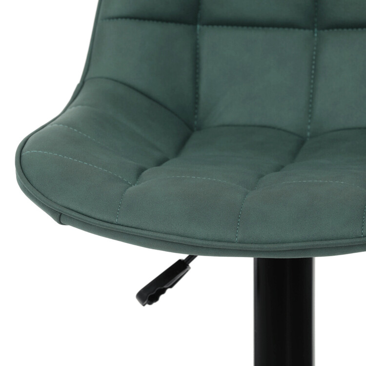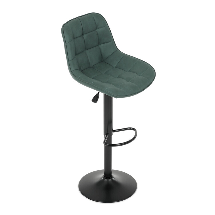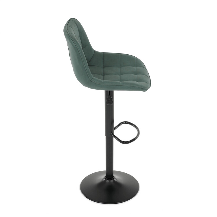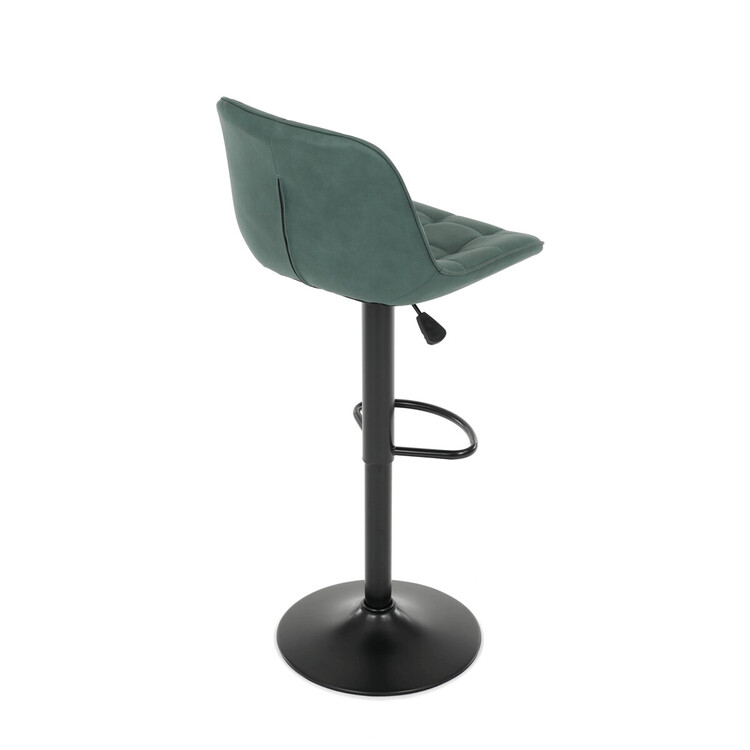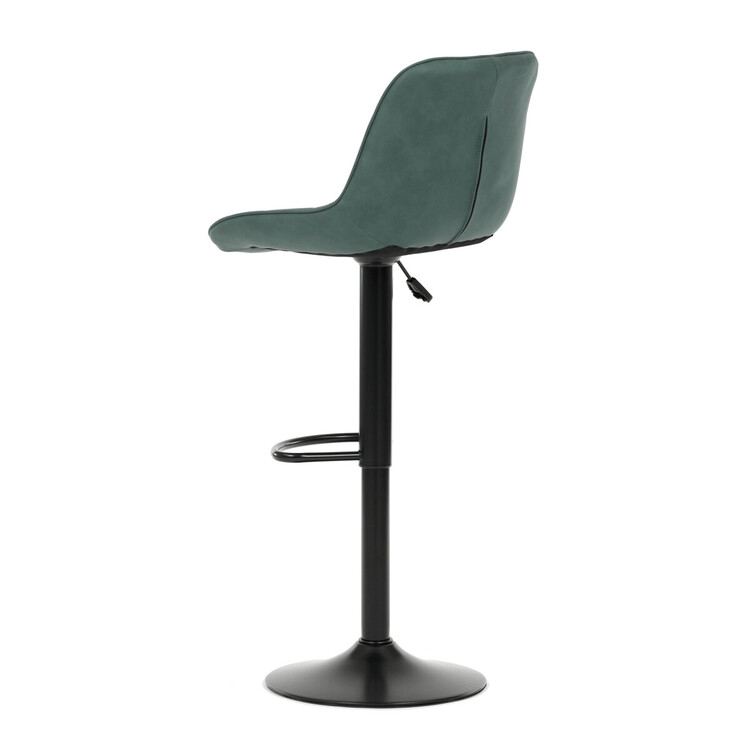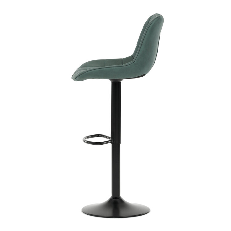 Barová stolička AUB-V3066 GRN3 kombinuje moderný dizajn s praktickými funkciami pre pohodlné sedenie pri barovom pulte. Sedák aj operadlo sú potiahnuté zelenou látkou v dekore brúsenej kože, ktorá ponúka príjemnú textúru a jednoduchú údržbu. Dizajnové prešitie dodáva stoličke výrazný vizuálny efekt a zároveň zvyšuje komfort vďaka lepšiemu tvarovaniu sedadla. Stabilná podnož z čierneho kovu je vybavená otočným mechanizmom a plynulým nastavením výšky, čo umožňuje prispôsobenie podľa potreby používateľa. Praktický oporný kruh poskytuje pohodlnú oporu nôh, zatiaľ čo celková konštrukcia je navrhnutá pre dlhú životnosť a stabilitu.