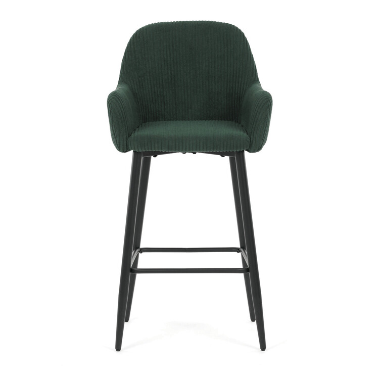 Barová stolička s podrúčkami v zelenom menčestrovom poťahu ponúka pohodlné posedenie s príjemnou textúrou látky, ktorá je navrhnutá pre dlhú životnosť a jednoduchú údržbu. Pevná kovová podnož v čiernom matnom prevedení zaisťuje stabilitu a odolnosť pri každodennom používaní.... více informací o zboží