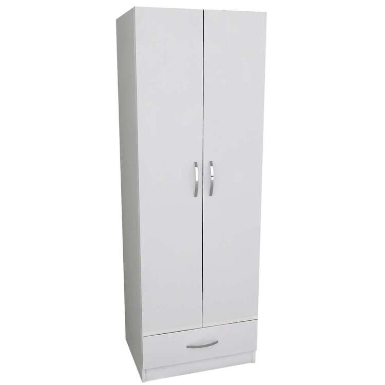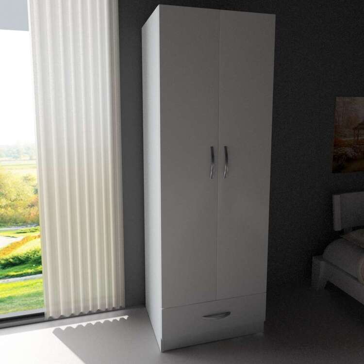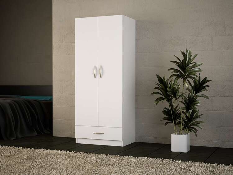 Šatníková skriňa vyniká svojim škandinávskym dizajnom v bielej farbe, ktorý dodá vašej spálni svieži a moderný vzhľad. Praktické vnútorné usporiadanie s jednou šatníkovou tyčou, jednou zásuvkou a dvoma policami ponúka dostatok úložného priestoru pre vaše oblečenie a ďalšie predmety.