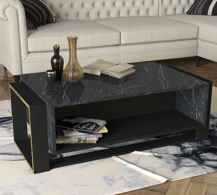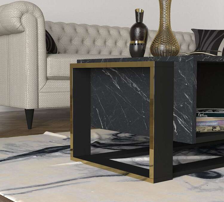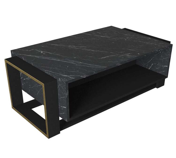 Konferenčný stolík je ideálnou voľbou pre tých, ktorí hľadajú moderný a funkčný nábytok s luxusným vzhľadom. Jeho kombinácia čiernej a mramorovej farby a minimalistický design prinášajú do vášho domova sviežosť a moderný štýl, zatiaľ čo poskytujú dostatok úložného priestoru pre všetky vaše potreby.