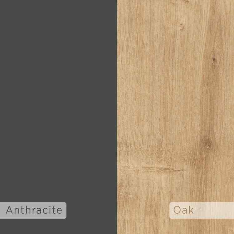 Regál ponúka tri priestranné police pre vaše obľúbené knihy, dekorácie či iné predmety. Kombinácia duba a antracitu dodá vášmu interiéru sofistikovaný a moderný vzhľad, zatiaľ čo kvalitné materiály zaručujú dlhú životnosť a stabilitu tohto nábytku.