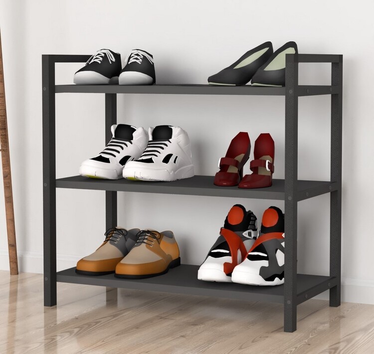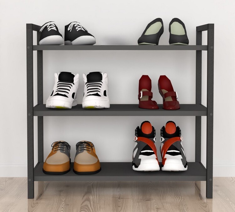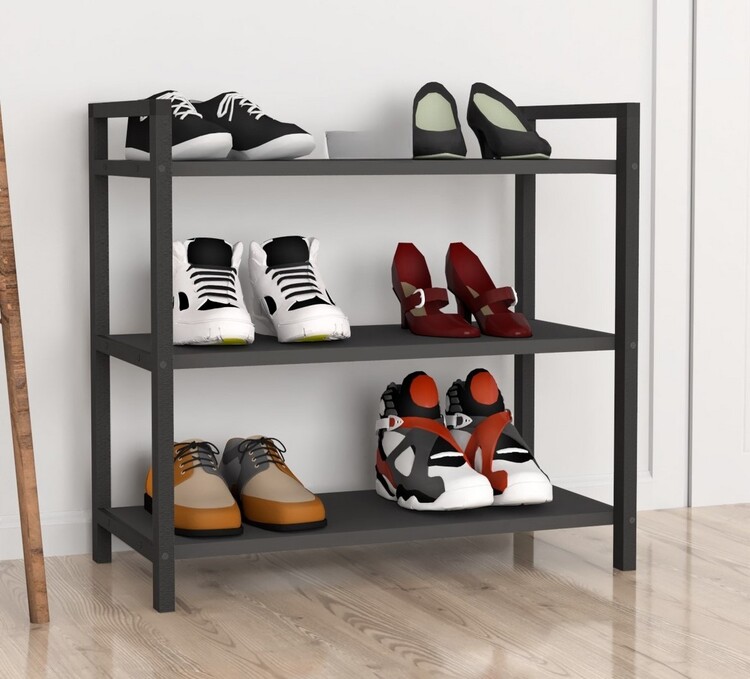 Botník s tromi policami je z kovového rámu v matnej čiernej farbe a police sú vyrobené z kvalitnej LTD dosky. Farbené prevedenie políc je antracit. Dodávame v demontovanom stave.CASA 36008 více informací o zboží