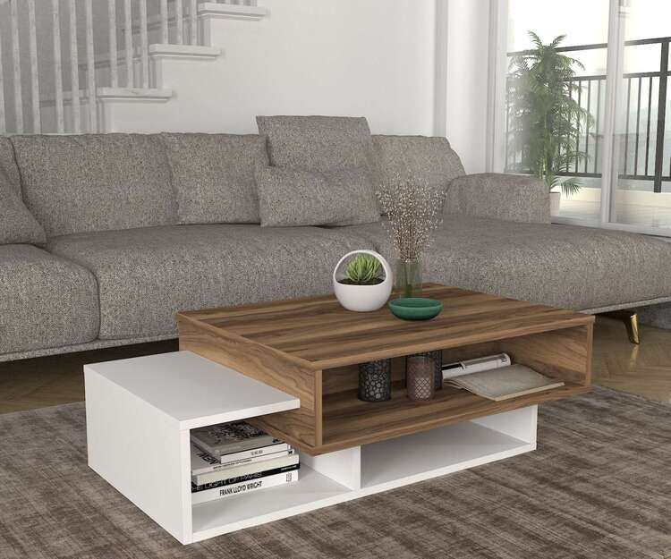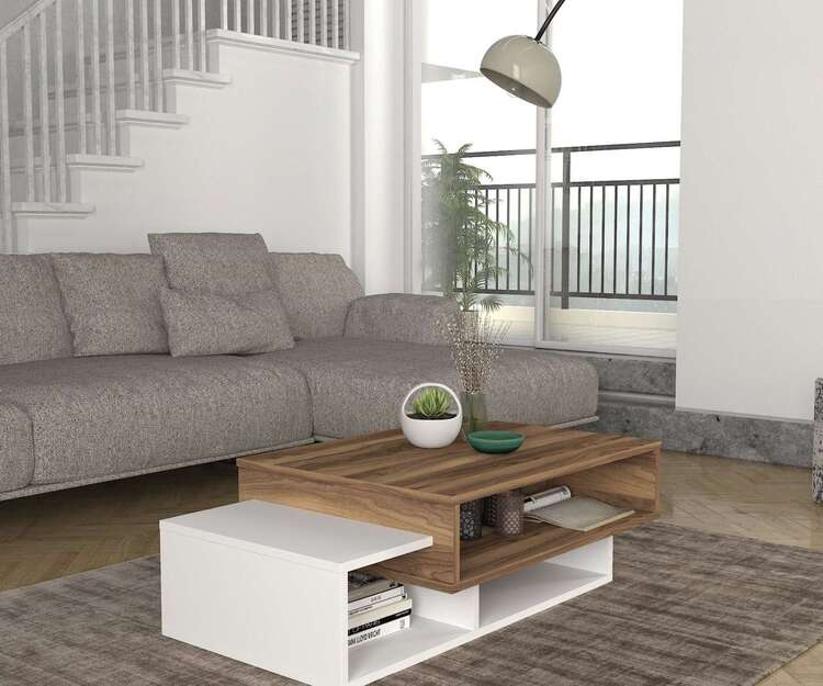 Predstavujeme konferenčný stolík, ktorý prináša do vašej obývačky eleganciu a funkčnosť. Tento štýlový nábytok v kombinácii bielej a orechovej farby je navrhnutý tak, aby poskytoval praktické a estetické riešenie pre vaše potreby.