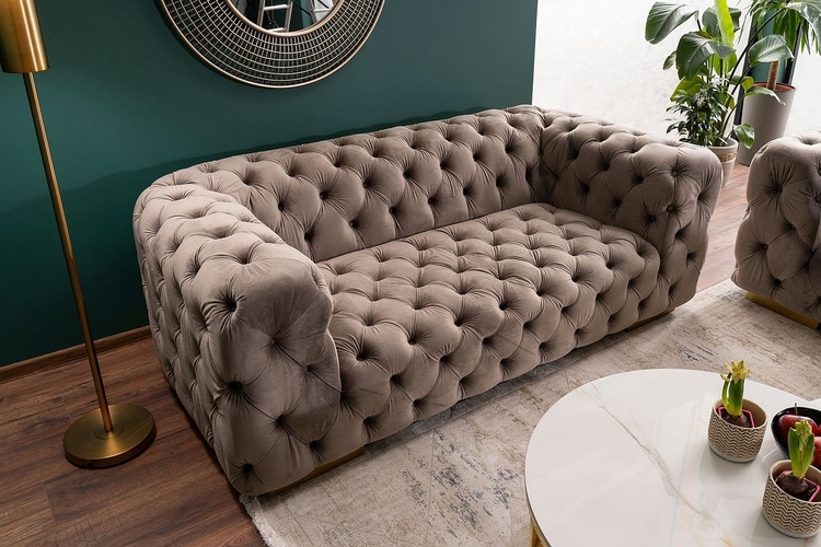 Elegantné čalúnené dvojkreslo-sofa v luxusnom anglickom štýle bude ozdobou každého interiéru. Nôžky kresla sú z kovu v zlatej farbe, vysoké 6 cm, čalúnenie je z látky velvet aksamit vo farbe béžovej (TAP.199). Celková výška kresla je 69 cm, výška sedadla je 40 cm, hĺbka sedadla je 62 cm. Pohodlie... více informací o zboží