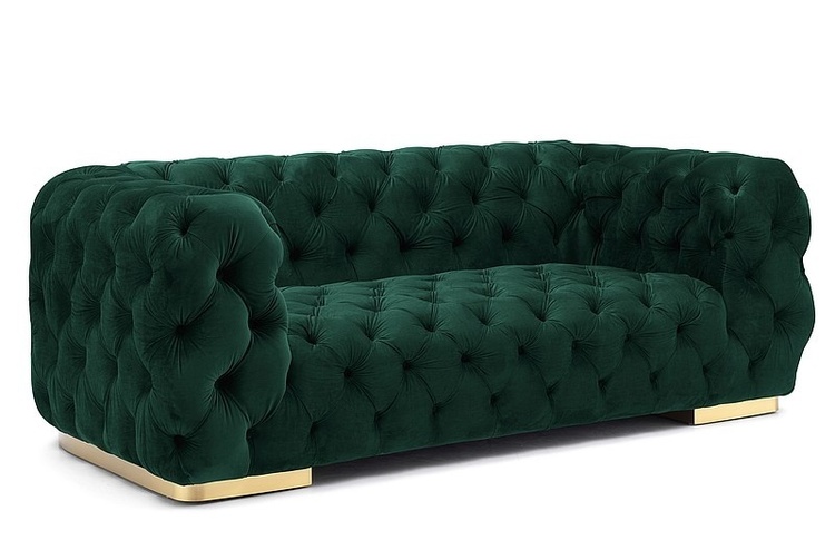 Elegantné čalúnené dvojkreslo-sofa v luxusnom anglickom štýle bude ozdobou každého interiéru. Nôžky kresla sú z kovu v zlatej farbe, vysoké 6 cm, čalúnenie je z látky velvet aksamit vo farbe zelenej (TAP. 201). Celková výška kresla je 69 cm, výška sedadla je 40 cm, hĺbka sedadla je 62 cm.... více informací o zboží