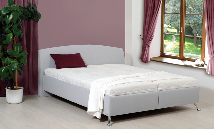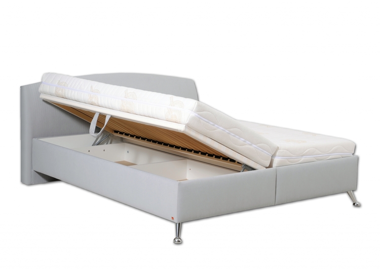 Luxusné, atraktívny čalúnené dvojlôžko s úložným priestorom a klenutým čelom na kovových nôžkach.