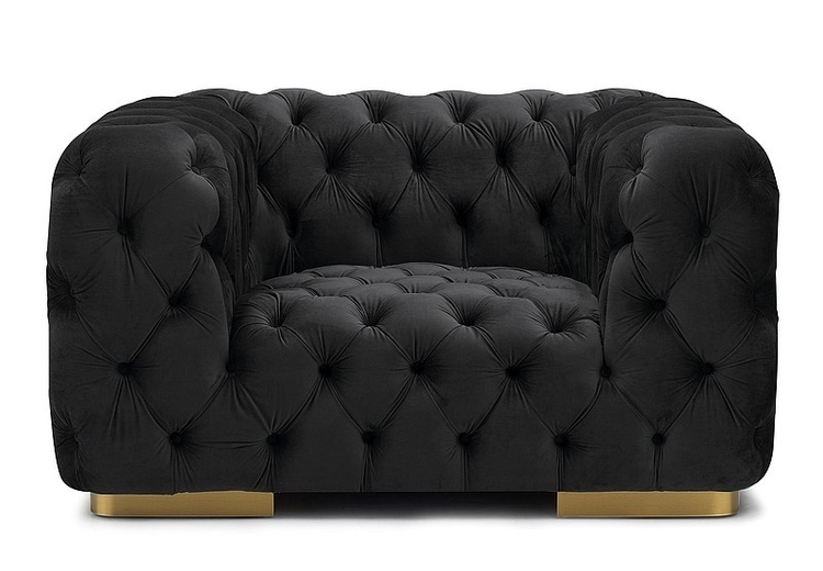 Elegantné čalúnené kreslo v luxusnom anglickom štýle bude ozdobou každého interiéru. Nôžky kresla sú z kovu v zlatej farbe, vysoké 6 cm, čalúnenie je z látky velvet aksamit vo farbe čiernej (TAP. 200). Celková výška kresla je 69 cm, výška sedadla je 40 cm, hĺbka sedadla je 62 cm. Pohodlie a... více informací o zboží