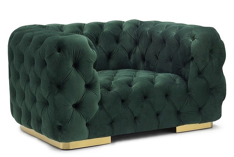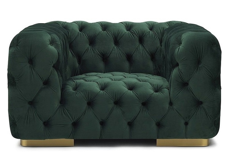 Elegantné čalúnené kreslo v luxusnom anglickom štýle bude ozdobou každého interiéru. Nôžky kresla sú z kovu v zlatej farbe, vysoké 6 cm, čalúnenie je z látky velvet aksamit vo farbe zelenej (TAP. 201). Celková výška kresla je 69 cm, výška sedadla je 40 cm, hĺbka sedadla je 62 cm. Pohodlie a elegancia vo Vašej obývačke, detskej izbe či kancelárii.CASA 12131