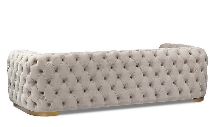 "Elegantné čalúnené trojkreslo-sofa v luxusnom anglickom štýle bude ozdobou každého interiéru. Nôžky kresla sú z kovu v zlatej farbe, vysoké 6 cm, čalúnenie je z látky velvet aksamit vo farbe béžovej (TAP.199). Celková výška kresla je 69 cm výška sedadla je 40 cm, hĺbka sedadla je 62 cm. Pohodlie a elegancia vo Vašej obývačke, detskej izbe či kancelárii.CASA 12131"