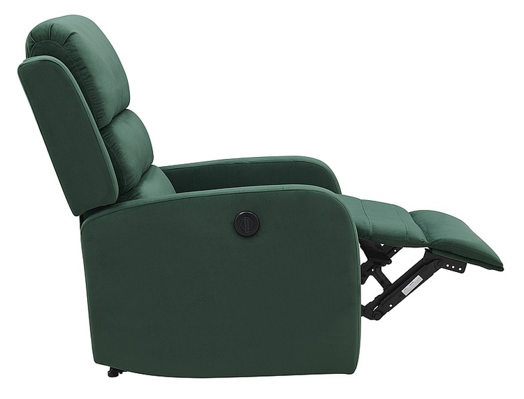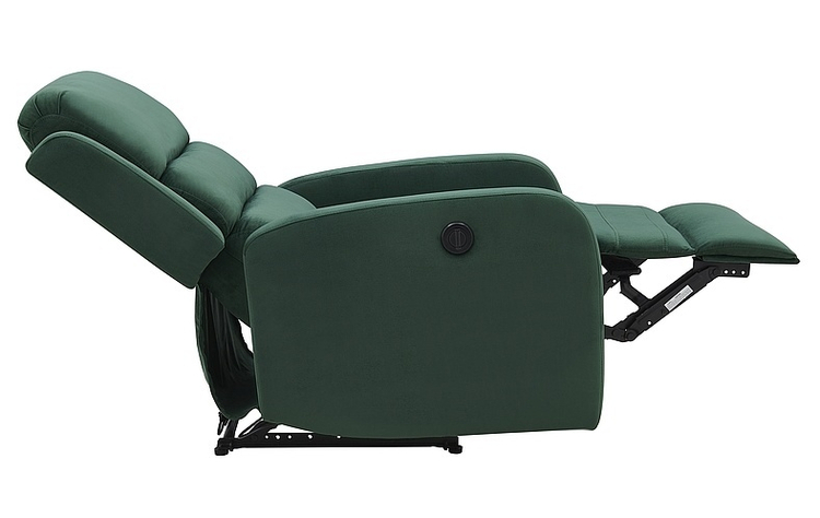 Rozkladacie čalúnené kreslo. Rozloženie kresla je na elektrinu (220 V). Jednoduchým pohybom urobíte pohodlnú pohovku s opierkou pod nohy. Čalúnenie je z látky velvet v zelenej farbe (Bluvel78). Celková hĺbka kresla je 88 cm, po rozložení 160 cm. Hĺbka sedu je 53 cm, výška sedu 47 cm. Pohodlie a elegancia v kvalitnom prevedení vo Vašej obývačke, detskej izbe či kancelárii.CASA 11836