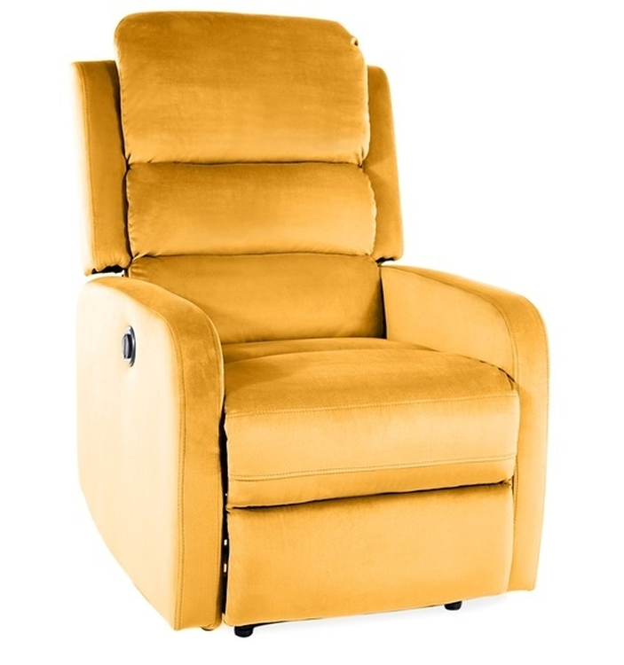Rozkladacie čalúnené kreslo. Rozloženie kresla je na elektrinu (220 V). Jednoduchým pohybom urobíte pohodlnú pohovku s opierkou pod nohy. Čalúnenie je z látky velvet v curry žltej farbe (Bluvel68). Celková hĺbka kresla je 88 cm, po rozložení 160 cm. Hĺbka sedu je 53 cm, výška sedu 47 cm. Pohodlie a elegancia v kvalitnom prevedení vo Vašej obývačke, detskej izbe či kancelárii.CASA 11836