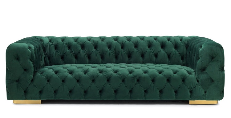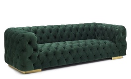 Elegantné čalúnené trojkreslo-sofa v luxusnom anglickom štýle bude ozdobou každého interiéru. Nôžky kresla sú z kovu v zlatej farbe, vysoké 6 cm, čalúnenie je z látky velvet aksamit vo farbe zelenej (TAP.201). Celková výška kresla je 69 cm, výška sedadla je 40 cm, hĺbka sedadla je 62 cm. Pohodlie a elegancia vo Vašej obývačke, detskej izbe či kancelárii.CASA 12131