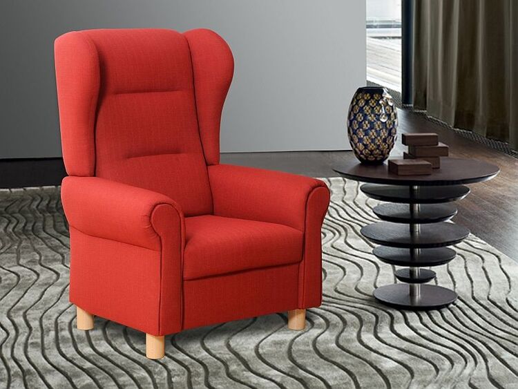 kreslo s vysokým operadlom. Kreslo typu ušiak klasického vzhľadu na drevených podstavcoch