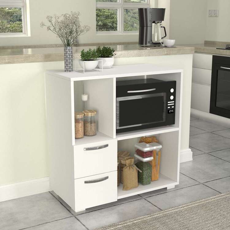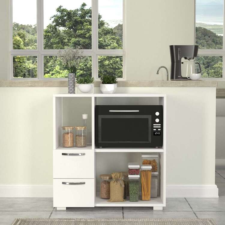 Skrinka ponúka dostatok úložného priestoru nielen na mikrovlnnú rúru, ale aj na ďalšie kuchynské potreby. Vyrobená z kvalitného materiálu LTD s hrúbkou 18 mm, zaručuje dlhú životnosť a odolnosť. Jej čistý dizajn v bielej farbe ľahko zapadne do akéhokoľvek kuchynského interiéru, pričom pridáva moderný a elegantný vzhľad.