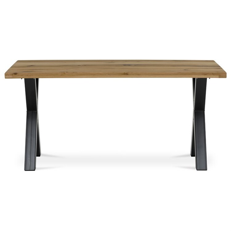 DS-X160 DUB - Stôl jedálenský, 160x90x75 cm, masív dub, kovové podnožie v tvare písmena "X", čierny lak