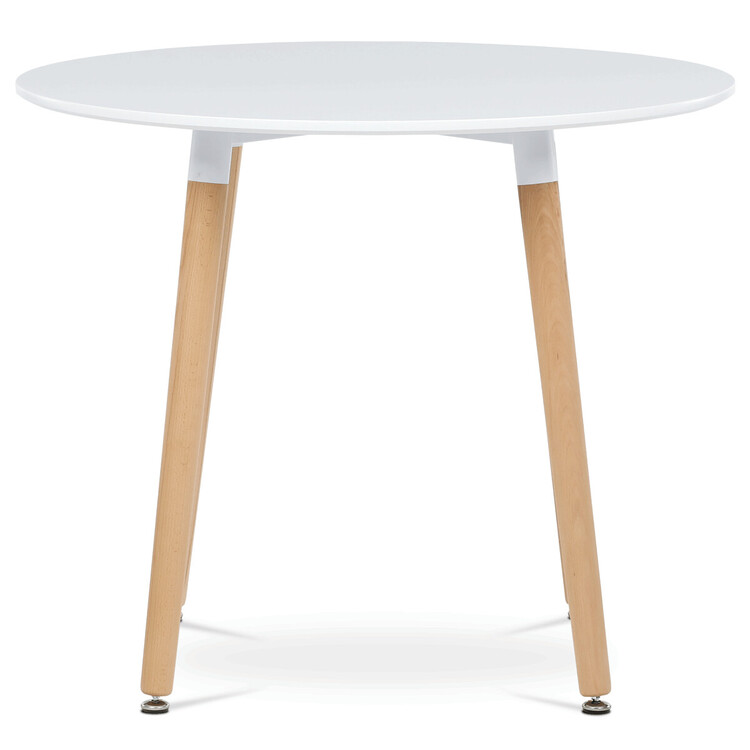 DT-306 WT - Stôl jedálenský, 90x90x74 cm, MDF - biely matný lak, kovová konštrukcia, drevené nohy