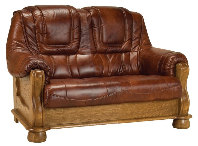 Elegantný dvojsedák, ktorý svojim vzhľadom a prevedením zaru? Uje luxus a pohodlie. Tento dvojsedák vyrába zna? Kový výrobca, ktorý si potrpí na kvalít? a detailoch. Dvojsedák je vyrobený z nejkvalitn? Nejšie pravej k? Že - lícovej so širokým výber? Rem farieb. Zadná strana je potiahnutá? Iernu látkou, za p? Íplatek možno zabezpečiť seda? Ku celo? ALÚNENÉ? Nú. Nohy sú vyrobené z masívneho dubového d? Eva s výber? Rom mo? Enie. Kožený nábytok je nutné? Isti iba za pomocou špeciálnych prost? EDK? na? istenia a konzerváciu p? prírodných k? ží, d? evo je t? eba? isti suchým m? mäkkou had? kou, je možné tiež používať prost? edky na konzerváciu a ochranu d? eva neobsahujúce silikón. Tento dvojsedák m? Môžete doplniť o trojsedák a k kreslo. Taktiež ponúkame aj ďalšie poťahové látky.