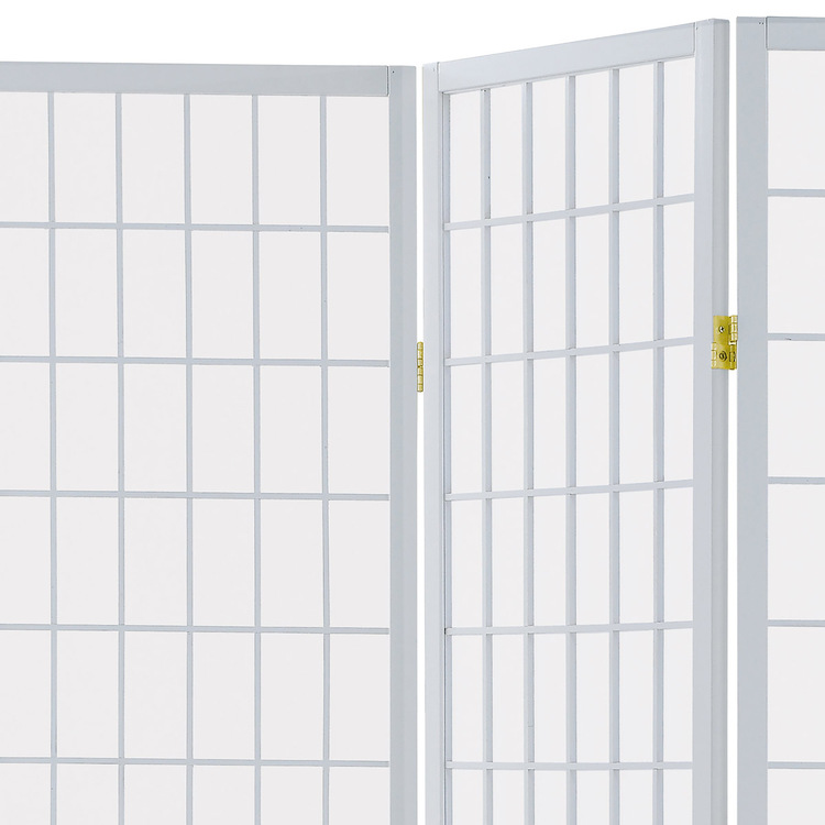 3-dielny voľne stojaci paraván s konštrukciou z masívneho smrekového dreva v bielom odtieni, lakovaný transparentným lakom a výplňou z bielej netkanej textílie. Plní nielen funkciu okrasnú, ale aj praktickú. Možno ho použiť ako zástenu alebo diskrétnu aj optickú deliacu priečku nielen v byte, ale aj v komerčných priestoroch. Vďaka skladacej konštrukcii a celkovej nízkej hmotnosti je možné ho bez problémov premiestňovať a manipulovať s ním.
