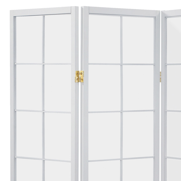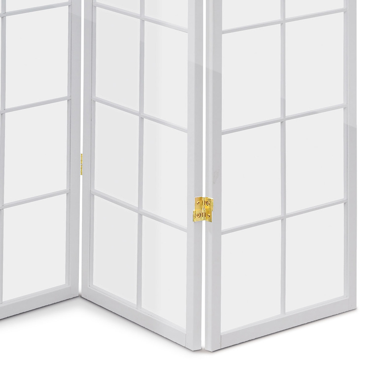 4-dielny voľne stojaci paraván s konštrukciou z masívneho smrekového dreva v bielom odtieni, lakovaný transparentným lakom a výplňou z bielej netkanej textílie. Plní nielen funkciu okrasnú, ale aj praktickú. Možno ho použiť ako zástenu alebo diskrétnu aj optickú deliacu priečku nielen v byte, ale aj v komerčných priestoroch. Vďaka skladacej konštrukcii a celkovej nízkej hmotnosti je možné ho bez problémov premiestňovať a manipulovať s ním.