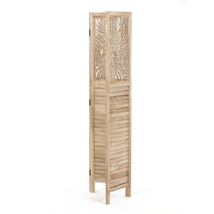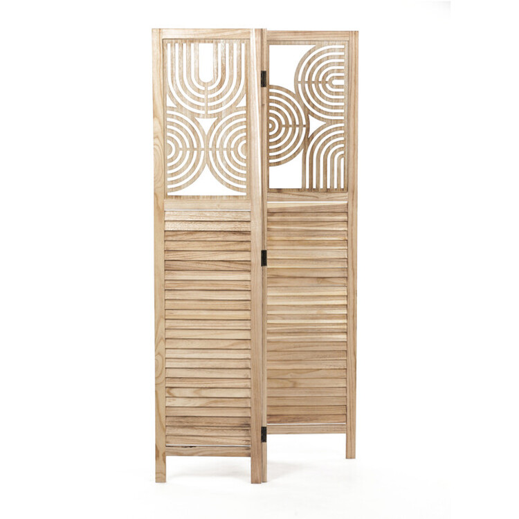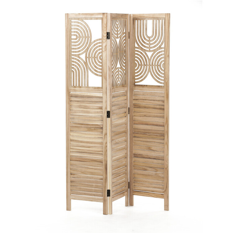 Trojdielny drevený paraván z masívu smreka v prírodnom odtieni kombinuje pevné prevedenie s dekoratívnou perforáciou hornej časti, ktorá vytvára zaujímavý vizuálny efekt. Každá časť je spojená kovovými pántami umožňujúcimi flexibilné nastavenie uhla a ľahké prenášanie či... více informací o zboží