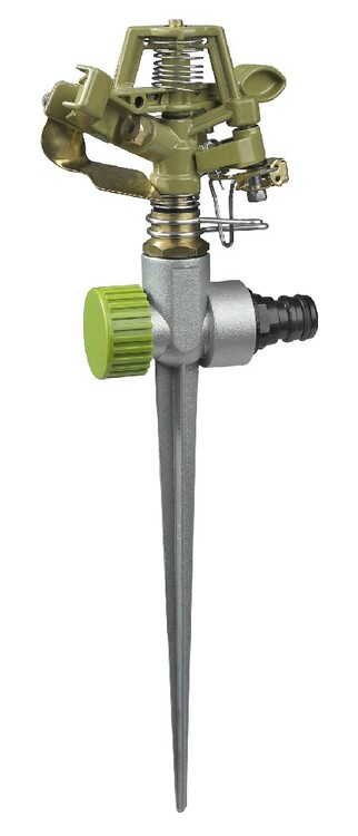 Post? Íkovo? Euro T-SPIKE Použitie: zavlažovanie záhrad, záhon ?, polí, kropenie úrody Materiál: zinok, mosadz Rotácia: 30-360 ° Spot? Eba vody: 2 bar -14 l / m, 3 bar -17,5 l / m, 4 bar - 20 l / m Dosah prúdu vody: 2 bar -24 m, 3 bar -25 m, 4 bar - 26 m P? prípojky: 1/2 "Kotviace tŕň: kov / kov