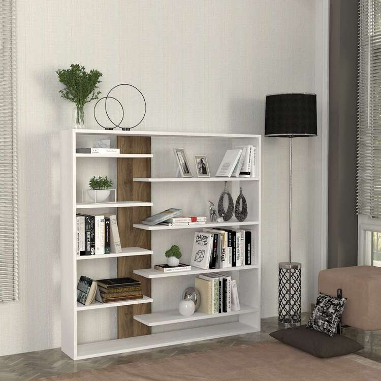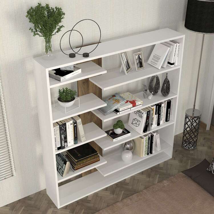Regál vyniká svojim moderným a praktickým dizajnom, ktorý sa skvele hodí do akéhokoľvek interiéru. Štyri pevné police poskytujú dostatok úložného priestoru pre knihy, dekorácie či kancelárske potreby. Kombinácia bielej a orechovej farby dodáva regálu elegantný vzhľad. Robustný LTD materiál s hrúbkou 18 mm zaisťuje dlhú životnosť a stabilitu tohto regálu.