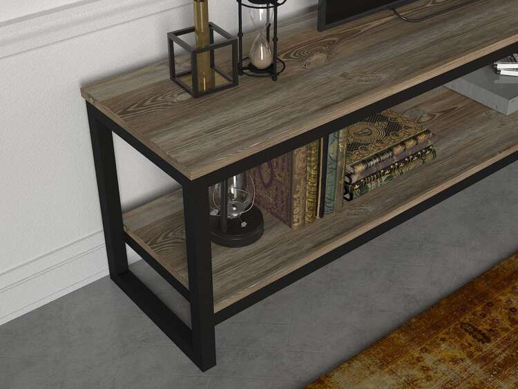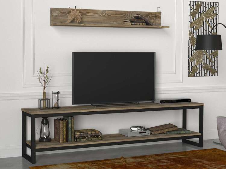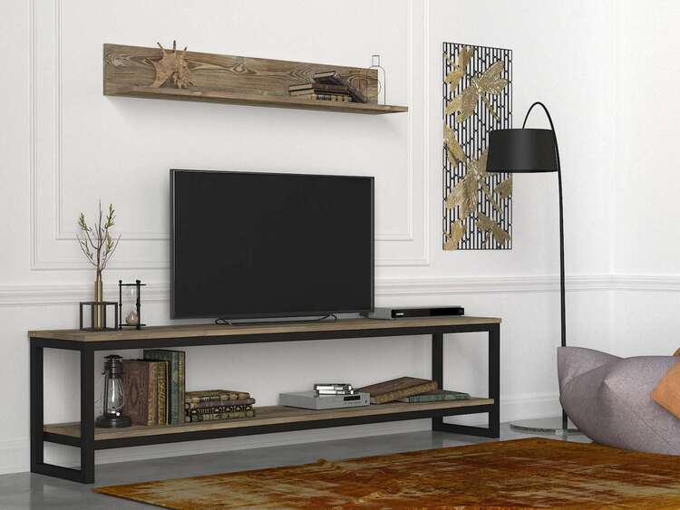 Predstavujeme obývaciu stenu, ktorá prináša do vašej obývačky štýlový loftový a industriálny design. Táto štýlová zostava v kombinácii hnedej a čiernej farby je navrhnutá tak, aby poskytovala praktické a estetické riešenie pre vaše multimediálne zariadenia a ďalšie potreby.