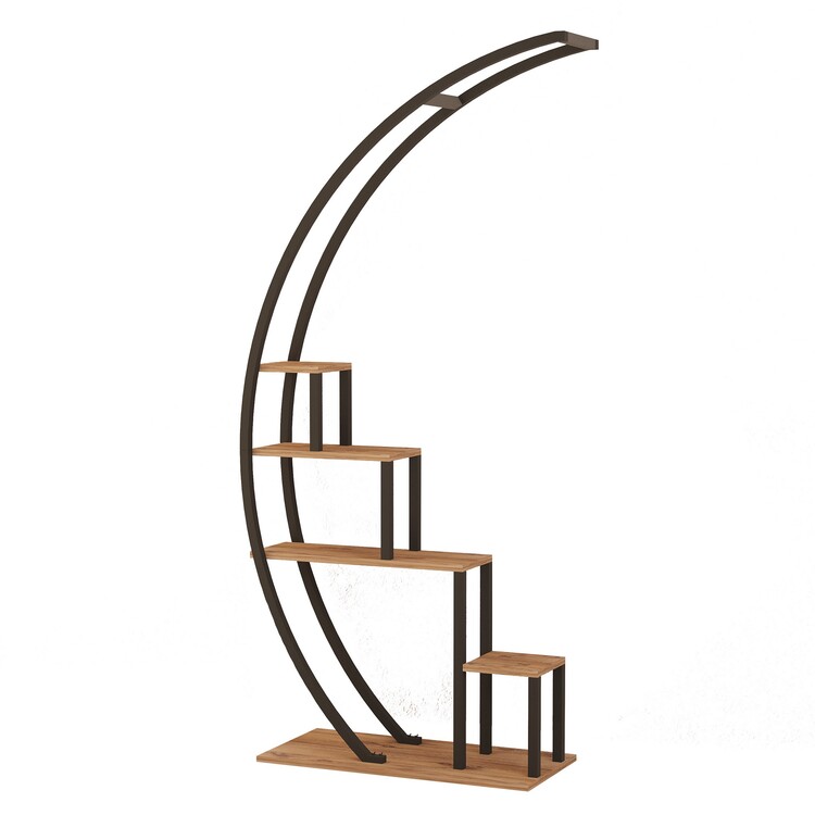 Zakrivený kovový dizajn nielen dodáva knižnici jedinečný nádych, ale