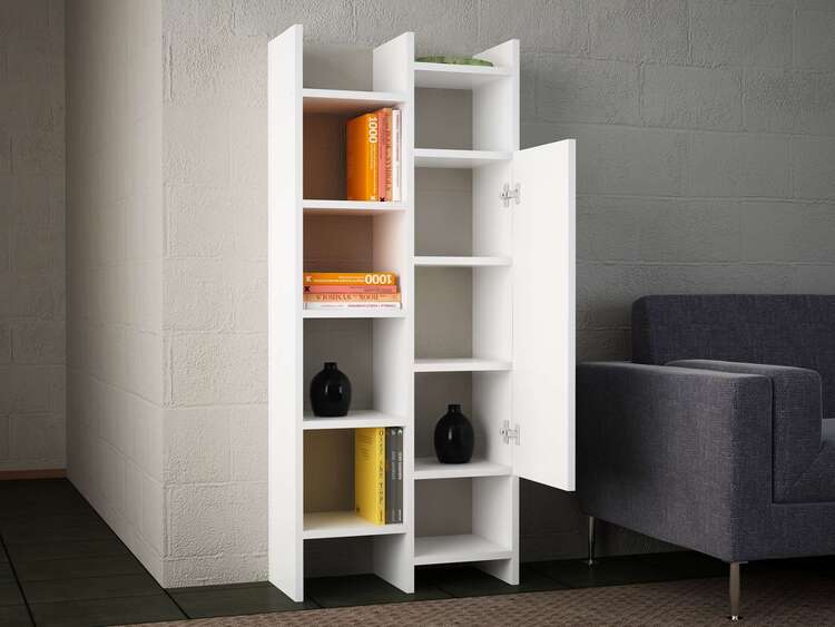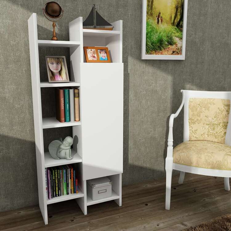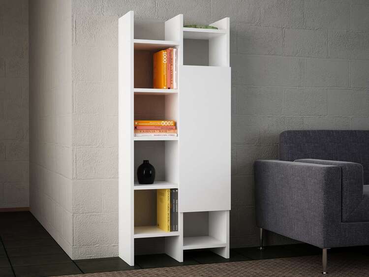 Regál vyniká svojim moderným a praktickým dizajnom, ktorý sa skvele hodí do akéhokoľvek interiéru. Päť pevných políc a praktická skrinka poskytujú dostatok úložného priestoru na knihy, dekorácie či kancelárske potreby. Robustný LTD materiál s hrúbkou 18 mm zaisťuje dlhú životnosť a stabilitu tohto regálu.
