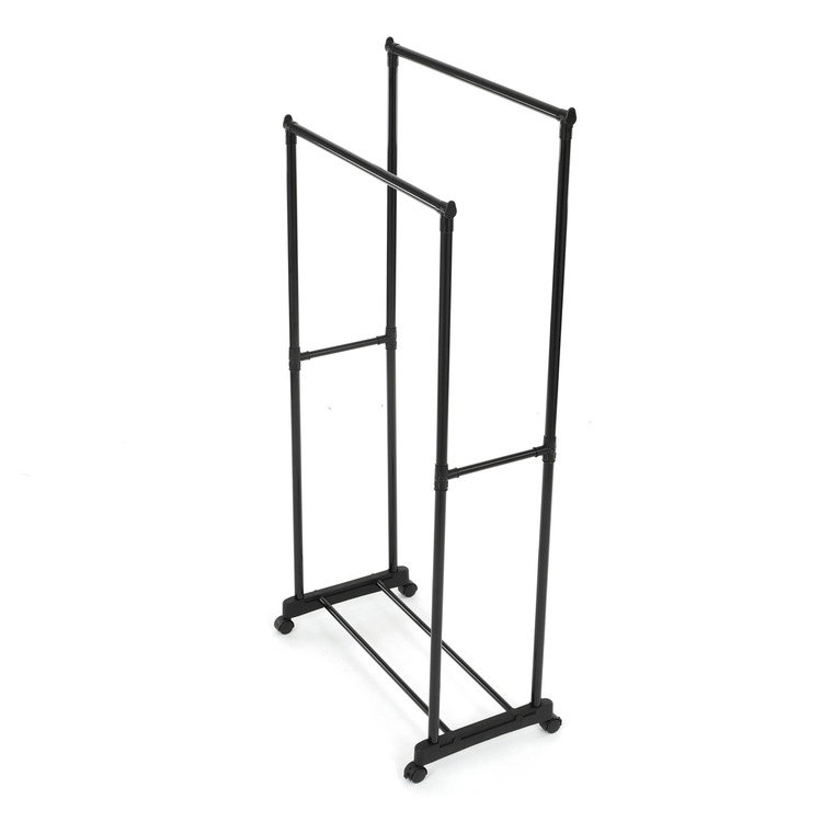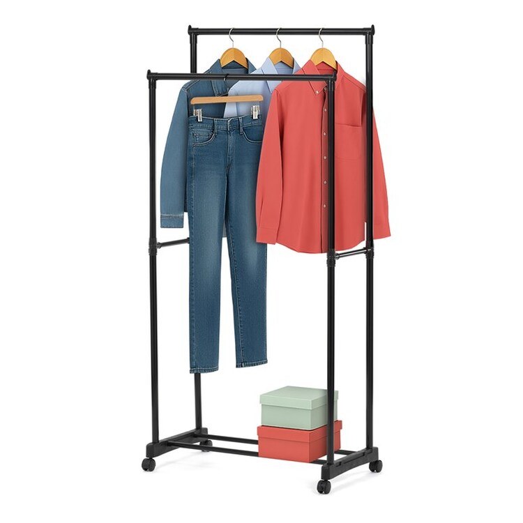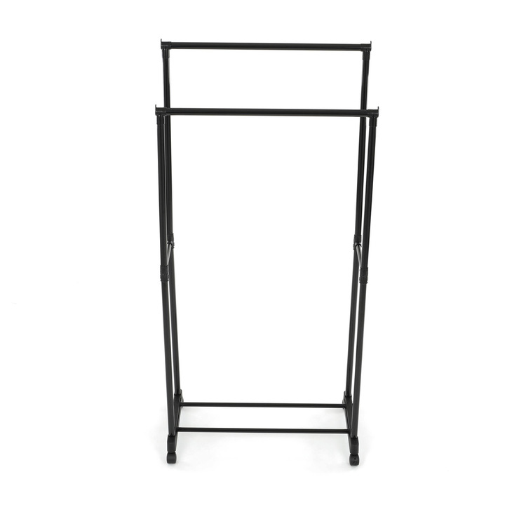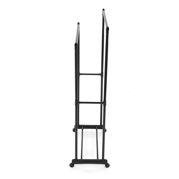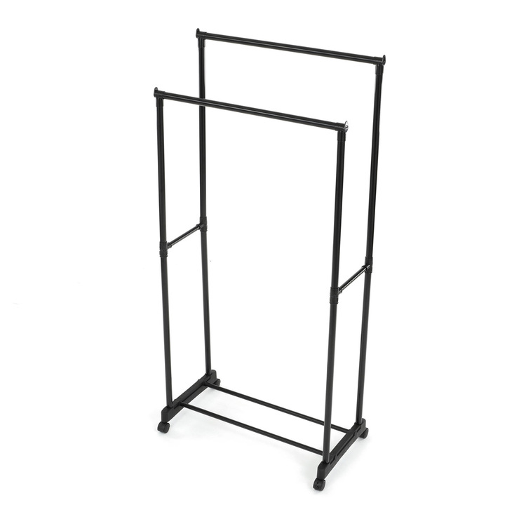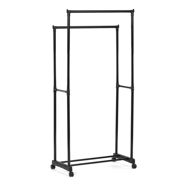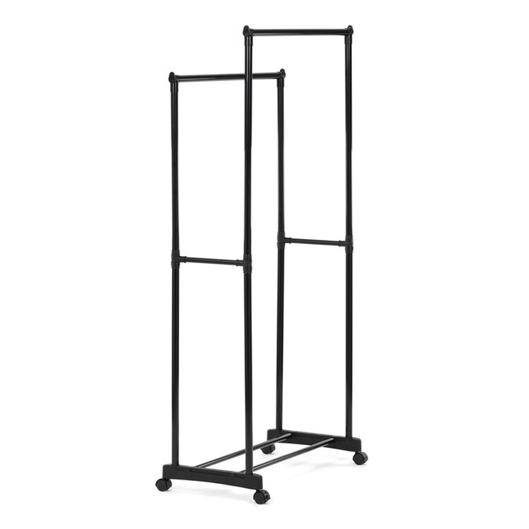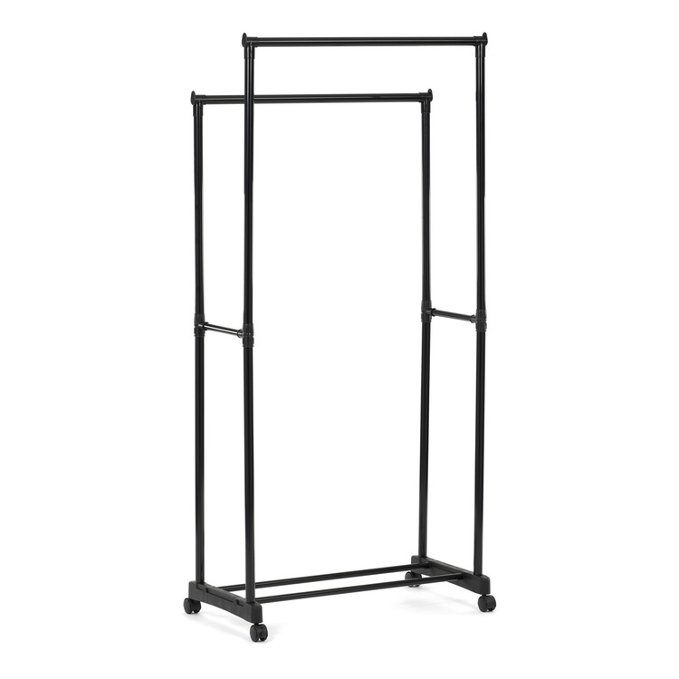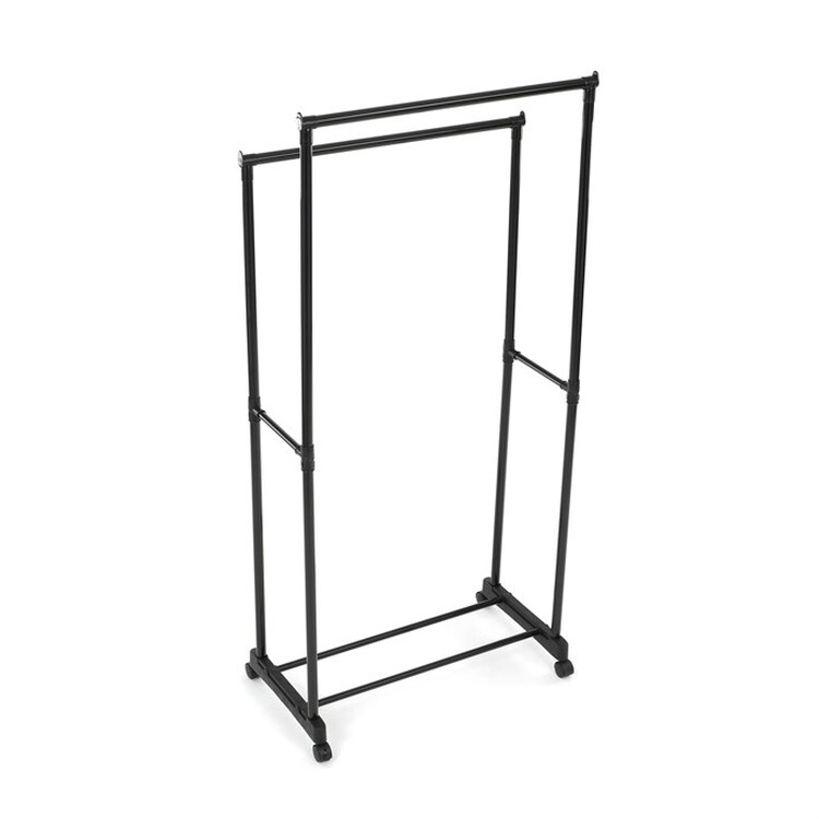 Praktický stojan na šaty značky Autronic je ideálnym riešením na prehľadné usporiadanie oblečenia a doplnkov. Čierna kovová konštrukcia ponúka odolnosť a moderný vzhľad, ktorý ľahko zapadne do akéhokoľvek interiéru. Stojan disponuje dvoma tyčami na zavesenie odevov a dolnou policou pre topánky či tašky. Vďaka kolieskam je ľahko premiestniteľný a ponúka flexibilitu pri jeho využití. Nastaviteľná výška umožňuje prispôsobenie vašim potrebám, čo z neho robí ideálny doplnok do šatne, spálne alebo predsiene.