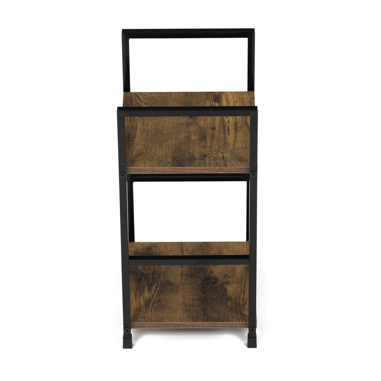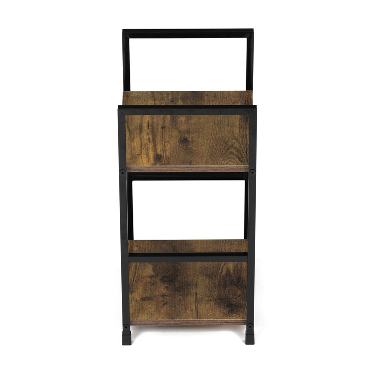 Predstavujeme vám praktický dvojposchodový regál značky Autronic v industriálnom štýle. Tento elegantný kúsok v hnedej farbe kombinuje pevný kovový rám s doskami z MDF s dekórom starého dreva. Jeho kompaktné rozmery umožňujú ľahké umiestnenie do každej obývačky, kde poskytne dostatok priestoru pre vaše dekorácie, knihy či ďalšie drobnosti.