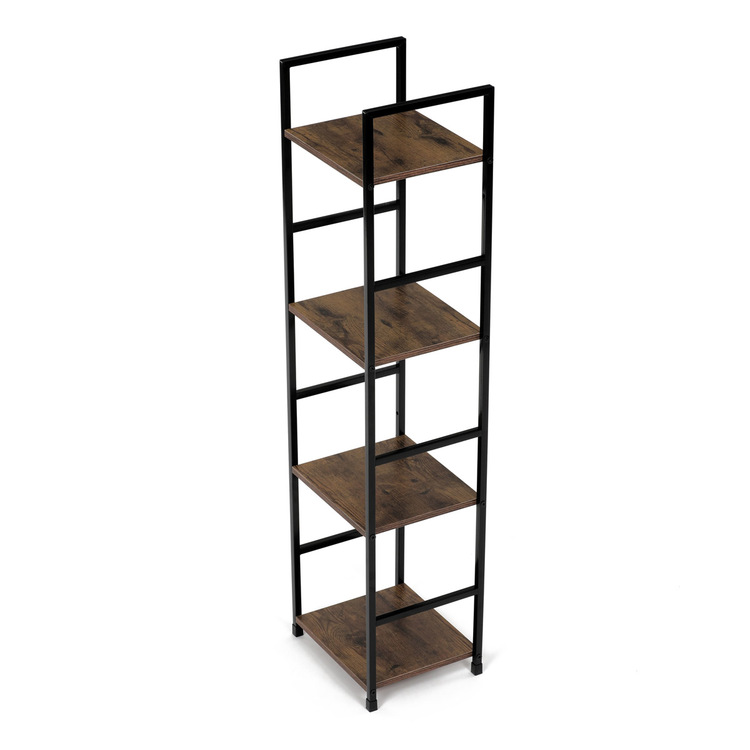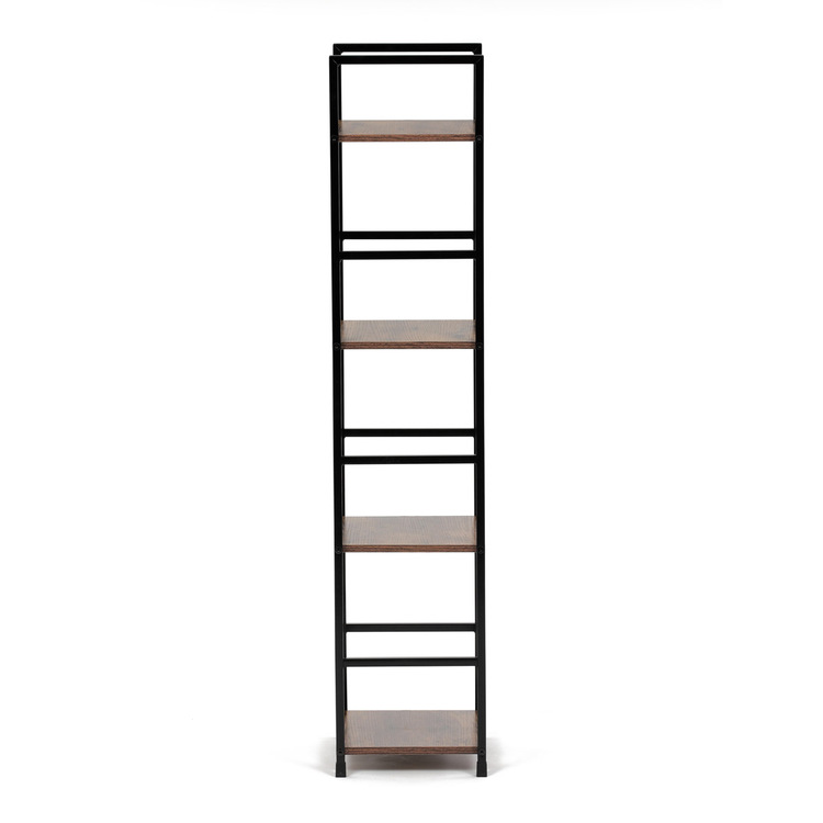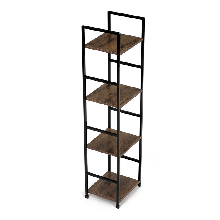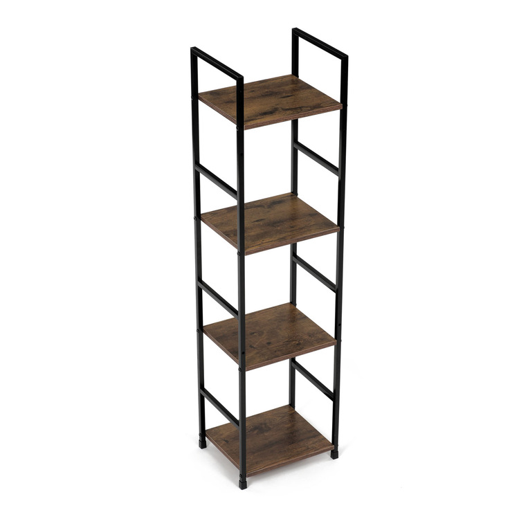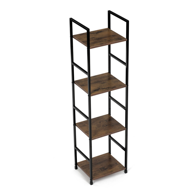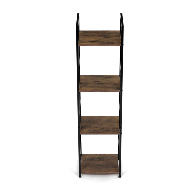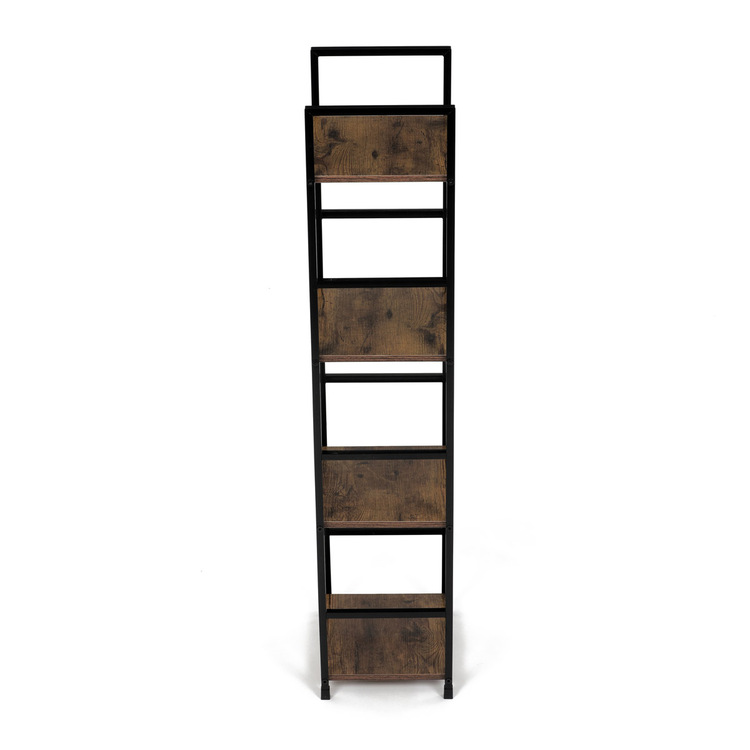 Predstavujeme vám praktický štvorposchodový regál značky Autronic v industriálnom štýle. Tento elegantný kúsok v hnedej farbe kombinuje pevný kovový rám s doskami z MDF s dekórom starého dreva. Jeho kompaktné rozmery umožňujú ľahké umiestnenie do každej obývačky, kde poskytne dostatok priestoru pre vaše dekorácie, knihy či ďalšie drobnosti.