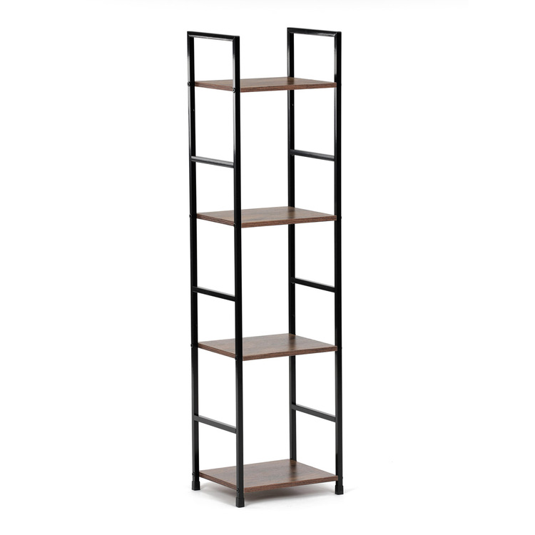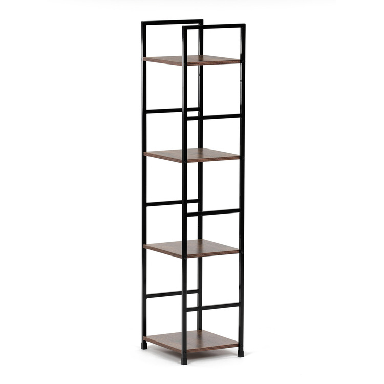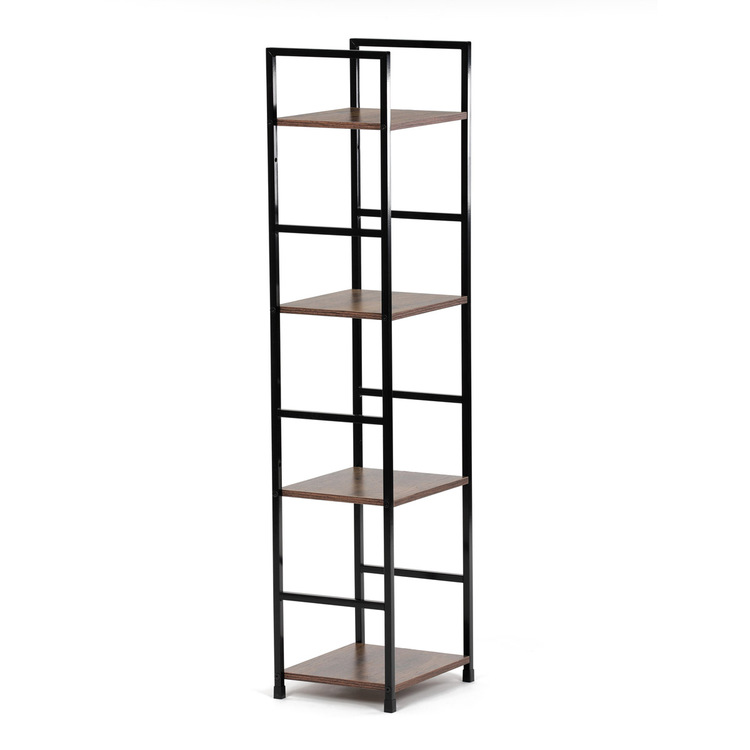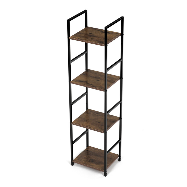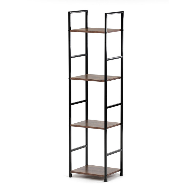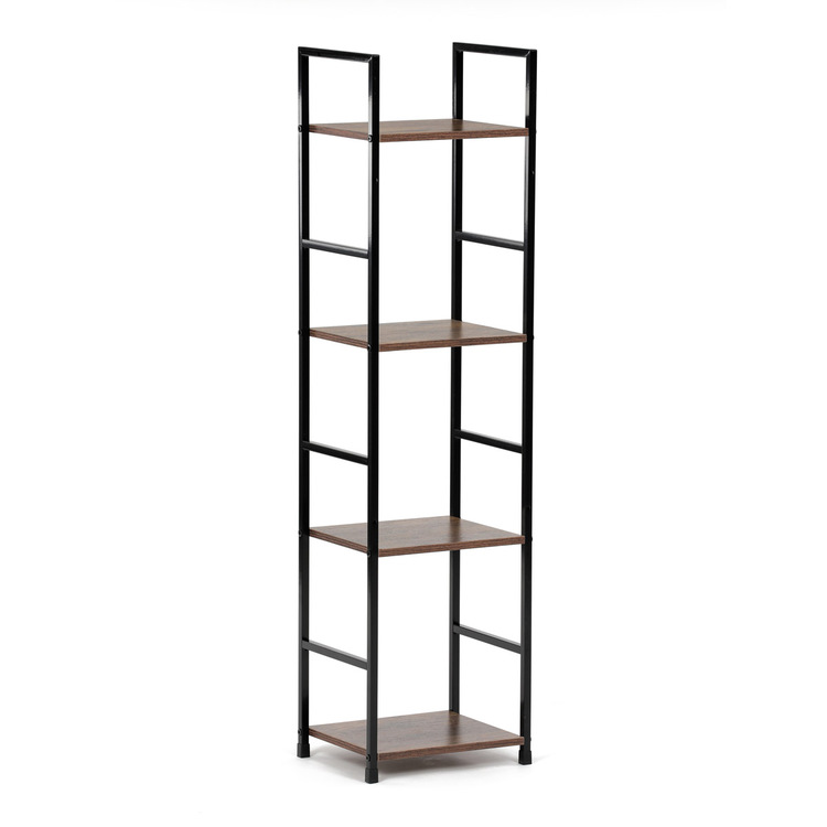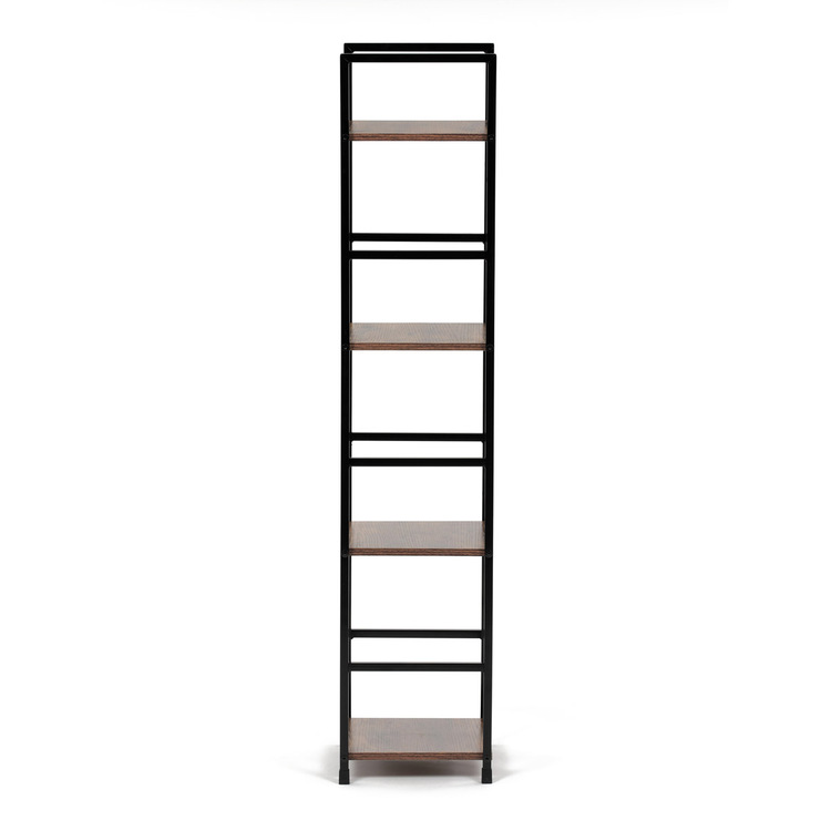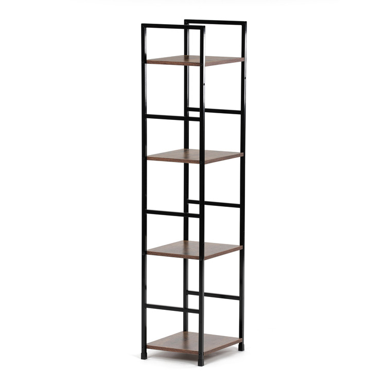 Predstavujeme vám praktický štvorposchodový regál značky Autronic v industriálnom štýle. Tento elegantný kúsok v hnedej farbe kombinuje pevný kovový rám s doskami z MDF s dekórom starého dreva. Jeho kompaktné rozmery umožňujú ľahké umiestnenie do každej obývačky, kde poskytne dostatok priestoru pre vaše dekorácie, knihy či ďalšie drobnosti.