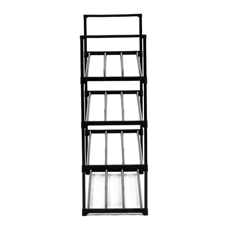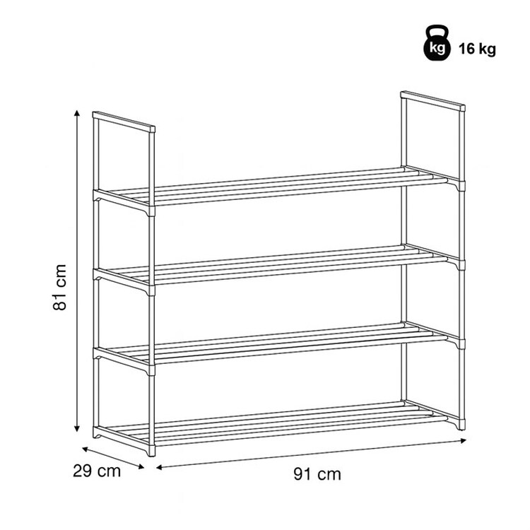 Priestranný botník značky Autronic ponúka elegantné a praktické riešenie na uskladnenie obuvi. Čierna kovová konštrukcia so štyrmi policami pojme veľké množstvo párov topánok, takže je ideálna aj pre väčšie domácnosti. Vďaka otvorenému dizajnu je obuv ľahko prístupná a dobre vetraná. Botník je stabilný, ľahký a ľahko premiestniteľný, čo ho robí vhodným doplnkom do predsiene, šatne či garáže.