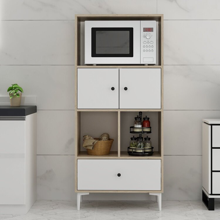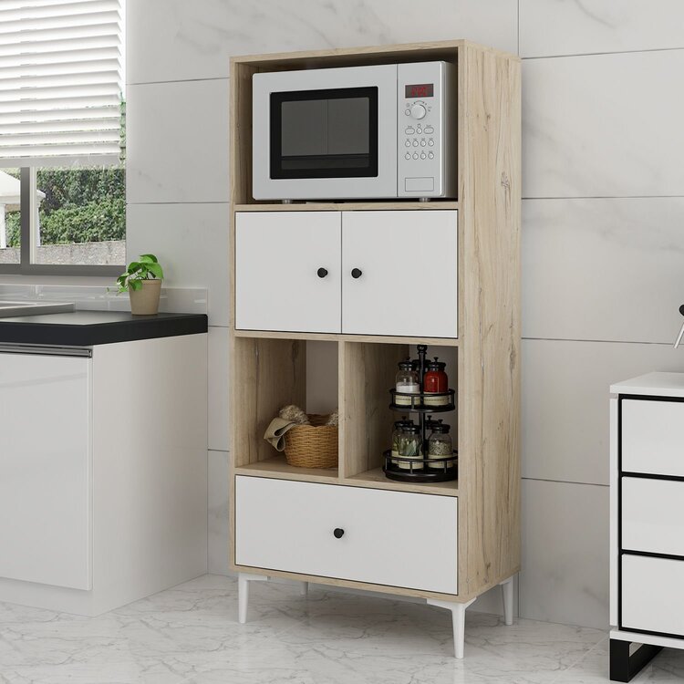 Skrinka na mikrovlnku je ideálnym riešením pre efektívne využitie priestoru v kuchyni. Kombinácia bielej farby a dekoru duba vytvára moderný vzhľad, ktorý sa hodí do každého interiéru. Vďaka svojej viacúčelovej konštrukcii poskytuje dostatok úložného priestoru a ponúka praktické riešenie na umiestnenie mikrovlnky a ďalších kuchynských potrieb.
