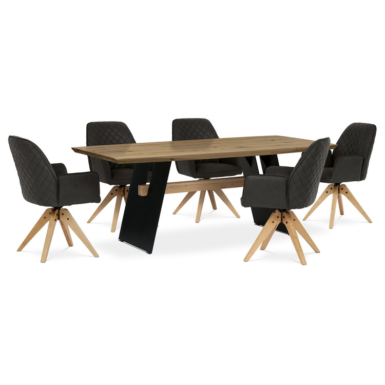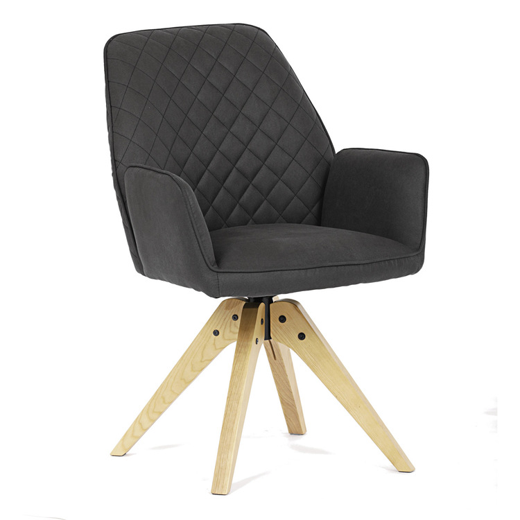 HC-539 BK3 - Stolička jedálenská, čierna vintage látka, dubové nohy, otočný mechanizmus